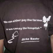 Birke Baehr thinks high-fructose corn syrup is a bad word. When he realized how bad it was, he immediately stopped drinking sodas and eating processed food. Now Birke travels to conferences as a guest speaker and advocate for organic, sustainable farming. BTW- Birke is 12! Support the farmers with one of Birke’s tees.
